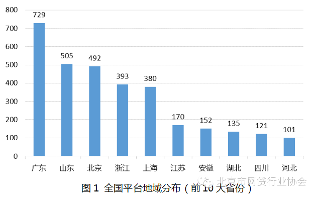 北京累计平台数量(含问题平台)达 492 家,数量低于广东和山东两个地区, 但在直辖市中依然位居首位,整体排名相比上月没有变化。
